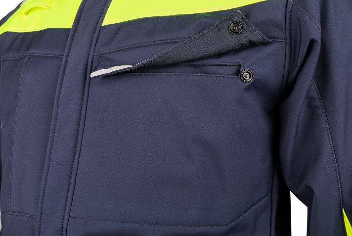 Unsere Umiat-Softshelljacke schützt Sie nicht nur vor Kälte und Regen, sondern auch vor gefährlichen Risiken bei der Arbeit. Diese dunkelblaue Softshelljacke mit Akzenten aus fluoreszierendem gelb und reflektierendem Material erfüllt viele internationale Normen, darunter IEC 61482-2, EN ISO 11612, EN ISO 14116, EN ISO 11611, EN 1149-5 und EN 13034. Neben einem hohen Schutzgrad bietet diese Softshelljacke auch eine Menge an praktische Merkmale wie z.B. Schlaufen zum Anbringen eines Funk- oder Gasmessgerätes und mehrere Taschen. Mit der Umiat-Softshelljacke sind Sie sowohl modisch gekleidet und auch gut geschützt.