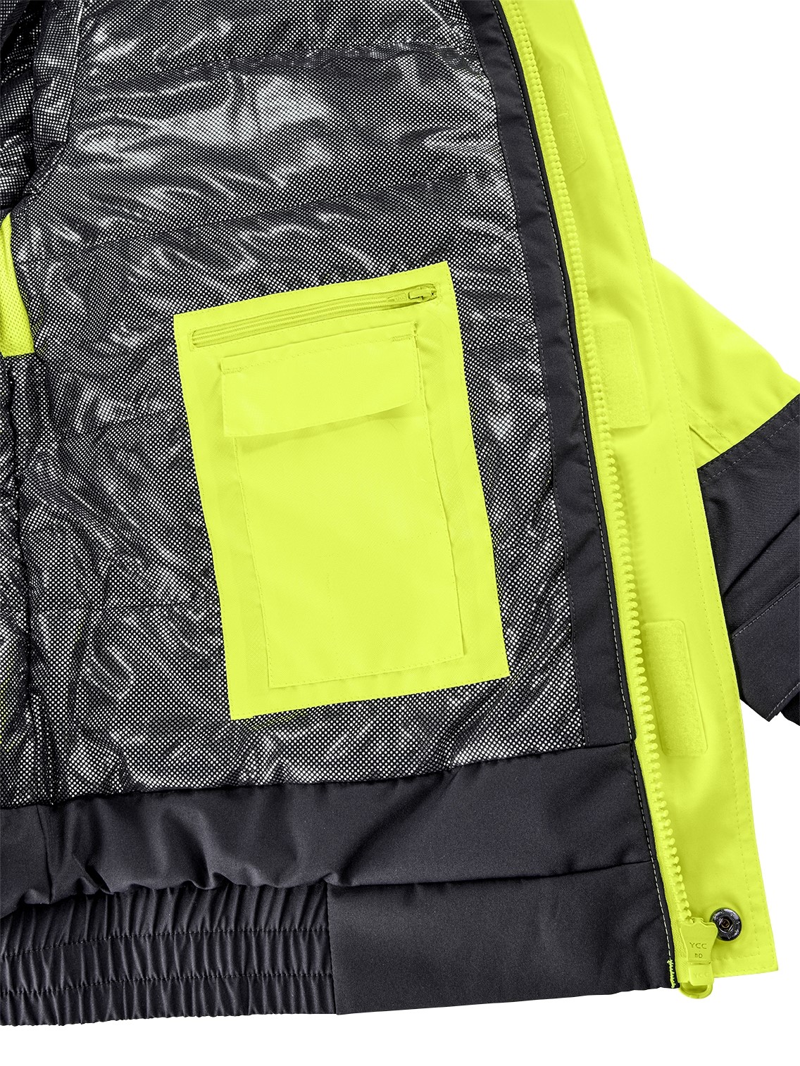 - Elastischer Saumabschluss, verstellbare Manschetten mit innenliegenden Elastikbündchen, doppelt abgedeckter Front-Reißverschluss, bandverschweißte Nähte, abnehmbare ID-Tasche in der linken Brusttasche,Service-Reißverschluss zum einfachen Bedrucken und Besticken