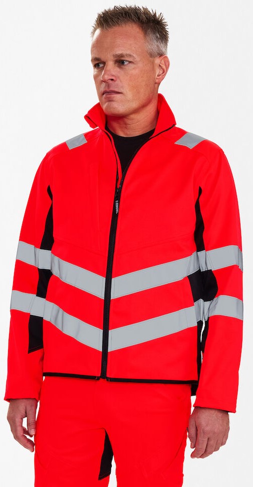 Dehnbare und funktionelle fluoreszierende Arbeitsjacke im modernen Design. Die Jacke hat einen hohen Kragen und ist hinten länger geschnitten. Der dehnbare Stoff bietet viel Komfort und Bewegungsfreiheit. Reißverschluss vorne. Zwei geräumige Seitentaschen sowie eine Brusttasche, jeweils mit Reißverschluss. Zusätzlicher Windfang aus Rippstrick an den Ärmeln. Der Windfang mit Daumenloch kann zum Schutz vor Kälte über die Hand gezogen werden. Reflexstreifen über die Schulterpartie hinweg sowie rund um Ärmel und Taille. Bekleidungsklasse 2. Nach 50 mal Waschen getestet.
