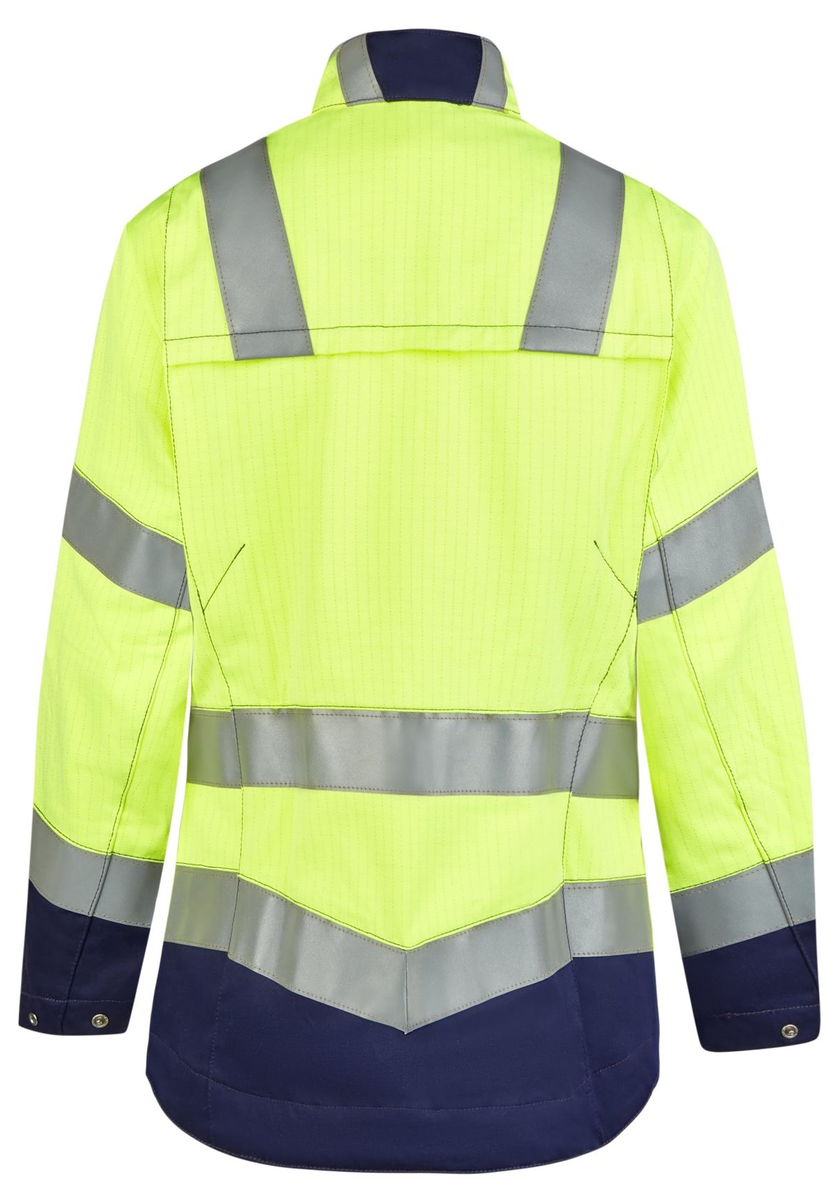 Stehkragen • vordere Mitte mit Reißverschluss und Druckknöpfen • 2 Brusttaschen mit Patte und Druckknopf • Ärmelabschluss weitenverstellbar durch Druckknöpfe • 2 Seitentaschen mit Reißverschlus • Bewegungsfalten im Rückenteil • verlängerter Rücken • 2 Brustinnentaschen mit Klett • 2 große Innentaschen • 50 mm Reflexstreifen um Rumpf, Ärmel und über Schulter • 25 mm Reflexstreifen am hinteren Kragen