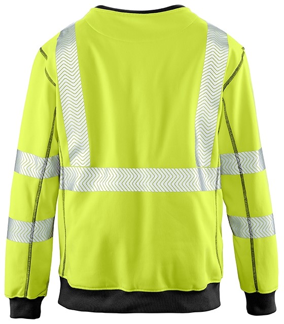 Sweatshirt aus trageangenehmen Mischgewebe. Die Baumwollfasern liegen direkt auf der Haut und sorgen so für ein trockenes und weiches Gefühl. Die robuste und farbintensive Aussenseite ist aus recyceltem Polyester. Somit sind problemlos 25 Wäschen möglich, ohne dass es zu einer Beeinträchtigung der Warnschutzwirkung kommt. Gr. M-6XL = Warnschutzklasse 3. Gr. XS+S= Warnschutzklasse 2. Die segmentierten Reflexstreifen sind direkt aufgeprinted, gewähren eine bessere Atmungsaktivität als aufgenähte Reflex-Folien und sind zudem mit dem Oberstoff zusammen elastisch.