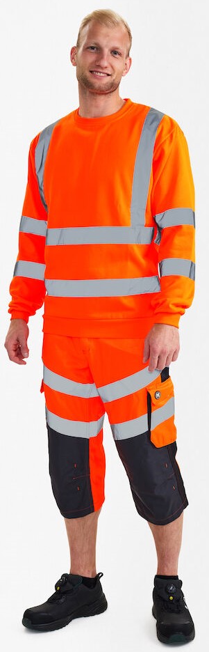 Funktionelles und schickes fluoreszierendes Sweatshirt. Angeraute Innenseite, die es weich und bequem macht. Rippstrick an Halsausschnitt, Ärmeln und Saum. Aufgenähte Reflexstreifen über der Schulterpartie sowie rund um Ärmel und Taille. Bekleidungsklasse 3. Getestet nach 25 Wäschen.