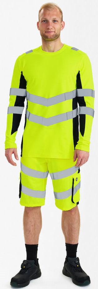 Bequemes und schickes, langärmeliges T-Shirt mit Warnschutzfunktion im modernen Design. Das T-Shirt besteht aus bequemem Pikee-Stoff mit Baumwolle auf der Innenseite für mehr Komfort. Rippstrick am Halsausschnitt. Reflexstreifen an der Schulterpartie sowie rund um Ärmel und Taille. Bekleidungsklasse 2. Nach 25 mal Waschen getestet.