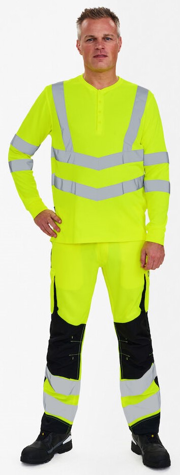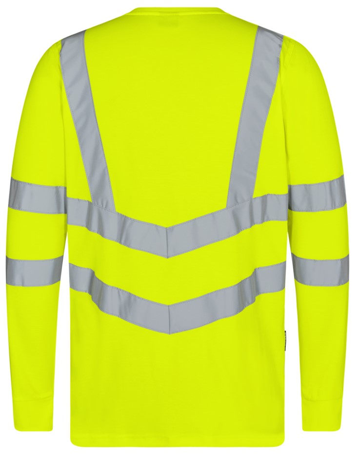 Bequemes und schickes, langärmeliges T-Shirt mit Warnschutzfunktion im modernen Design. Dieses T-Shirt hat Knöpfe und einen runden Halsausschnitt mit kleinem Rippstrickbündchen. Hinten länger als vorne. Rippstrickbündchen an den Ärmeln. Das T-Shirt besteht aus bequemem Pikee-Stoff mit Baumwolle auf der Innenseite für mehr Komfort. Reflexstreifen über die Schulterpartie hinweg sowie rund um Ärmel und Taille. Bekleidungsklasse 3. Nach 25 mal Waschen getestet.