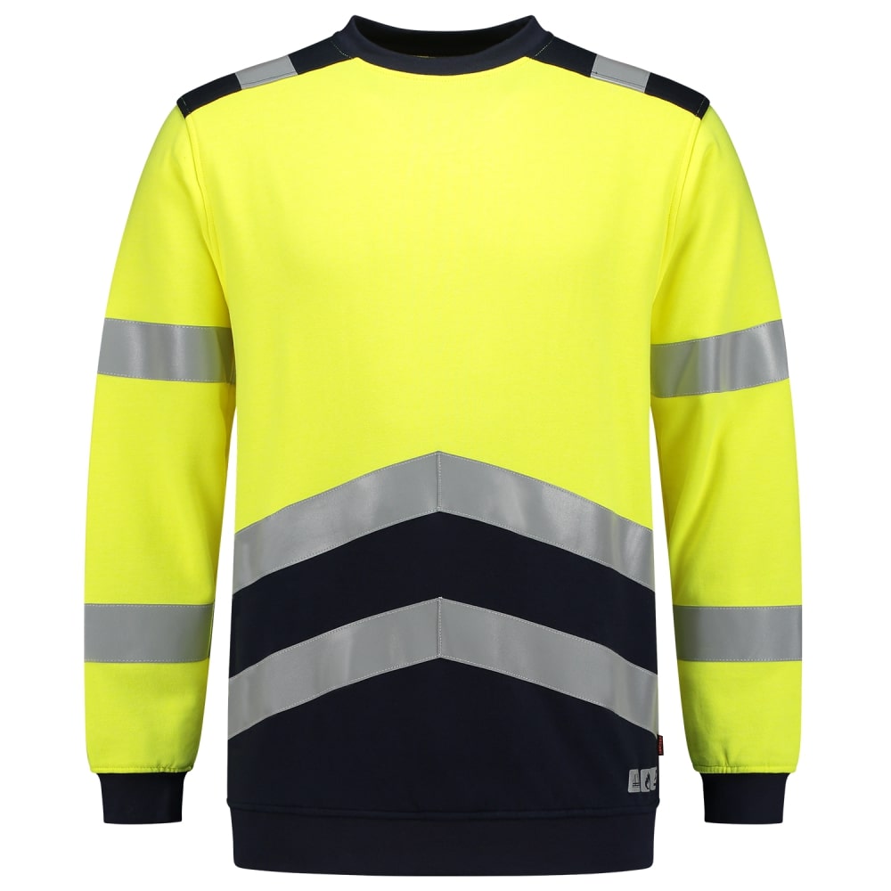 Das Sweatshirt Mulitnorm Bicolor aus der Tricorp Safety-Kollektion überzeugt mit einem modischen Look. Der Pullover besteht aus 60% Modacryl, 39% gekämmter Baumwolle und 1% Sonstige Fasern. Gewicht: 260 g/m2. Dieses Produkt ist nach EN ISO 20471 (hohe Sichtbarkeit), EN ISO 11612 (Schutz gegen Hitze und Flammen) und EN 1149 (Elektrostatische Eigenschaften) zertifiziert.