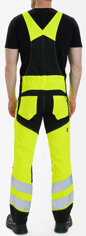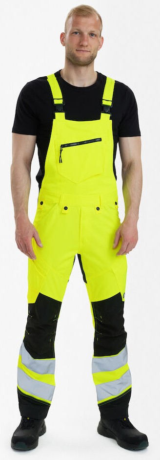 Dehnbare und funktionelle fluoreszierende Latzhose im modernen Design. Der dehnbare Stoff sorgt für optimale Bewegungsfreiheit und Komfort. Optimale Passform mit u. a. ergonomisch geformtem Kniebereich. Hoch geschnittenes Rückenteil und Rippstrickeinsätze an den Seiten sorgen für optimale Passform und Tragekomfort. Verstellbare Träger. Latztasche mit Reißverschluss. Latzinnentasche mit Reißverschluss. Zwei Gesäßtaschen. Zwei Schenkeltaschen mit Reißverschluss. Die linke Schenkeltasche hat eine zusätzliche Handytasche. Die rechte Schenkeltasche hat eine aufgesetzte Zollstocktasche mit zusätzlichen Unterteilungen. D-Ring an der Latztasche für die Befestigung von z. B. Ausweisen. Knieverstärkung/Knietasche mit Klettverschluss unten und besteht aus CORDURA®-Material. Breiter Saum unten, der ausgelassen werden kann, wenn zusätzliche Beinlänge erforderlich ist. Um die Hose zu verlängern, muss lediglich eine Naht aufgetrennt werden. Das Hosenbein ist trotzdem noch gesäumt. Bekleidungsklasse 2. Nach 50 mal Waschen getestet