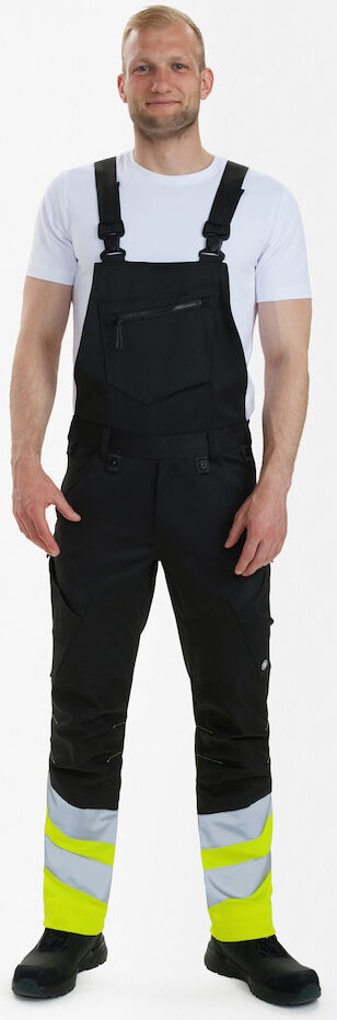 Dehnbare und funktionelle fluoreszierende Latzhose im modernen Design. Der dehnbare Stoff sorgt für optimale Bewegungsfreiheit und Komfort. Optimale Passform mit u. a. ergonomisch geformtem Kniebereich. Hoch geschnittenes Rückenteil und Rippstrickeinsätze an den Seiten sorgen für optimale Passform und Tragekomfort. Verstellbare Träger. Latztasche mit Reißverschluss. Latzinnentasche mit Reißverschluss. Zwei Gesäßtaschen. Zwei Schenkeltaschen mit Reißverschluss. Die linke Schenkeltasche hat eine zusätzliche Handytasche. Die rechte Schenkeltasche hat eine aufgesetzte Zollstocktasche mit zusätzlichen Unterteilungen. D-Ring an der Latztasche für die Befestigung von z. B. Ausweisen. Knieverstärkung/Knietasche mit Klettverschluss unten und besteht aus CORDURA®-Material. Breiter Saum unten, der ausgelassen werden kann, wenn zusätzliche Beinlänge erforderlich ist. Um die Hose zu verlängern, muss lediglich eine Naht aufgetrennt werden. Das Hosenbein ist trotzdem noch gesäumt. Bekleidungsklasse 2. Nach 50 mal Waschen getestet