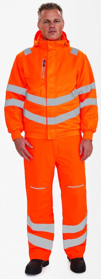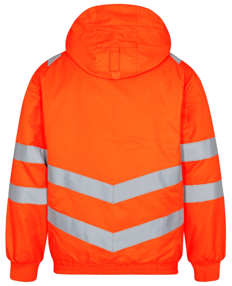 Fluoreszierende, wind- und wasserabweisende Pilotenjacke mit modernem Schnitt. Hoher Kragen mit Fleece innen. Doppelte Knopfleiste mit Reißverschluss sowie Klettverschluss vorne. Zwei geräumige Seitentaschen sowie Brusttasche mit Reißverschluss. Zwei Innentaschen, eine davon mit Reißverschluss. Abnehmbare, verstellbare Kapuze mit ausreichend Platz für den Arbeitshelm. Elastischer Saum unten und Rippstrick am Ärmelabschluss. Reißverschluss im Futter, der sich für Aufdruck/Stickerei eignet. Reflexstreifen über der Schulterpartie sowie rund um Ärmel und Taille. Bekleidungsklasse 3. Getestet nach 50 Wäschen.