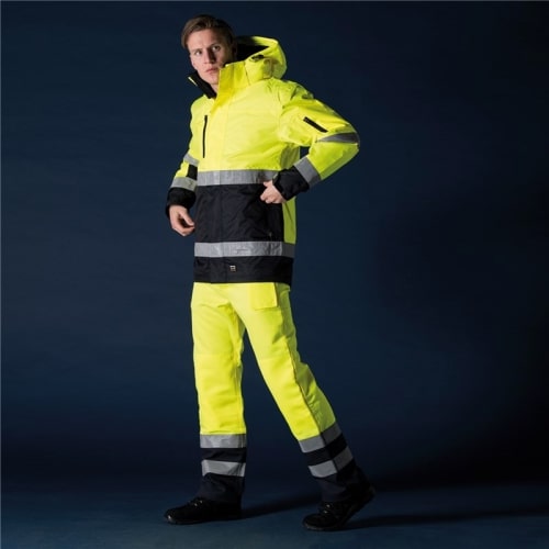 Zweifarbiger High-Visibility-Parka aus der Tricorp Safety-Kollektion. Gefertigt aus robustem, fluoreszierendem Gewebe und Kontrastgewebe mit PU-Beschichtung. Wind- und wasserdicht, atmungsaktiv nach EN343 Klasse 3:3. Mit versiegelten Nähten und wasserabweisenden Reißverschlüssen. Hohe Sichtbarkeit nach EN ISO 20471:2013, Klasse 2. Der Parka hat eine abnehmbare Kapuze mit Reißverschluss, verschließbare Eingrifftaschen mit Reißverschluss, eine Innentasche ist mit Reißverschluss fürs Handy mit Öffnung fürs Kabel. Reißverschluss mit Kinnschutz, längeres Rückenteil, verdeckten Reißverschluss (Revisionsöffnung), doppelte Wetterschutzleiste mit Regenrinne und verdeckte Druckknopfleiste. Dieser Parka hat eine herausnehmbare Thermo-Innenjacke, die auch separat getragen werden kann. Die Innenjacke ist nicht als Arbeitsjacke geeignet.
