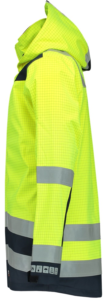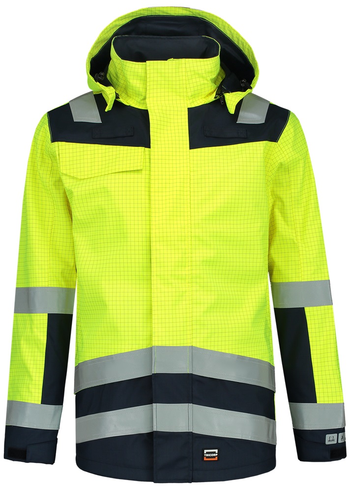 Der Parka Mulitnorm aus der Tricorp Safety-Kollektion besteht aus 98% Polyester und 2% Sonstige Fasern. Gewicht: 350 g/m2. Dieses Produkt ist nach EN ISO 11612 (Schutz gegen Hitze und Flammen) und EN 1149 (Elektrostatische Eigenschaften) zertifiziert.