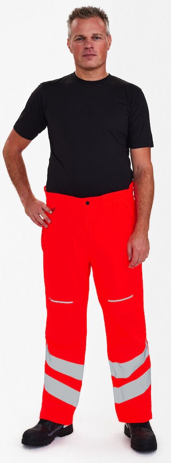 Fluoreszierende atmungsaktive, wasser- und winddichte Winterhose mit verschweißten Nähten. Zwei Fronttaschen mit Klettverschluss. D-Ring vorne für die Befestigung von z. B. Ausweisen. Extra hoher Lendenbereich und verstellbarer Gummizug in der Taille für maximalen Komfort. Verdeckter Zwei-Wege-Reißverschluss an den Beinen, der den Zugang zur Innenbekleidung ermöglicht sowie Schneefang/Windfang an den Beinen. Knieverstärkung. Reflexstreifen am Unterschenkel. Bekleidungsklasse 3. Nach 50 mal Waschen getestet.