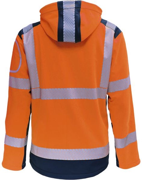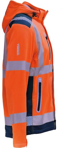 Produktinformationen "Vizwell VW177TO Warnschutz-Softshelljacke mit Kapuze leuchtorange-marine"