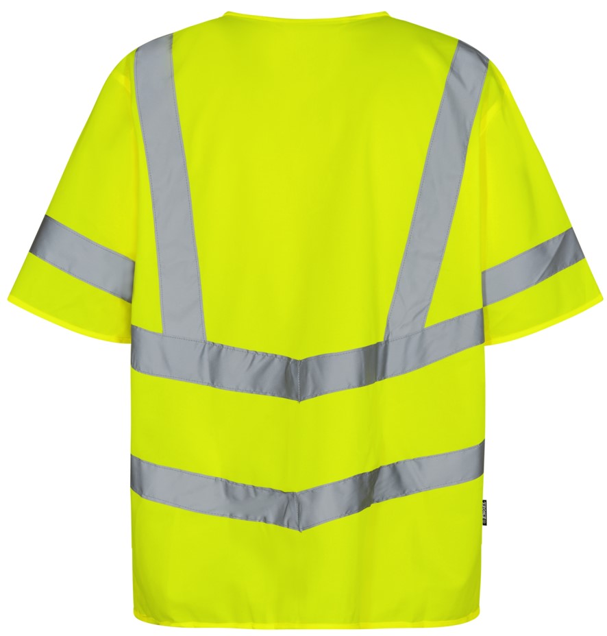 Leichte, bequeme Verkehrsweste mit kurzen Ärmeln und Klettverschluss vorn. Zwei große Außentaschen mit Klettverschluss. Reflexstreifen am Torso und über den Schultern. Bekleidungsklasse 3. Nach 25 mal Waschen getestet.