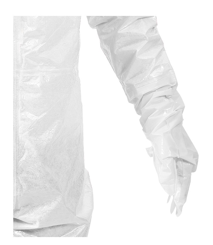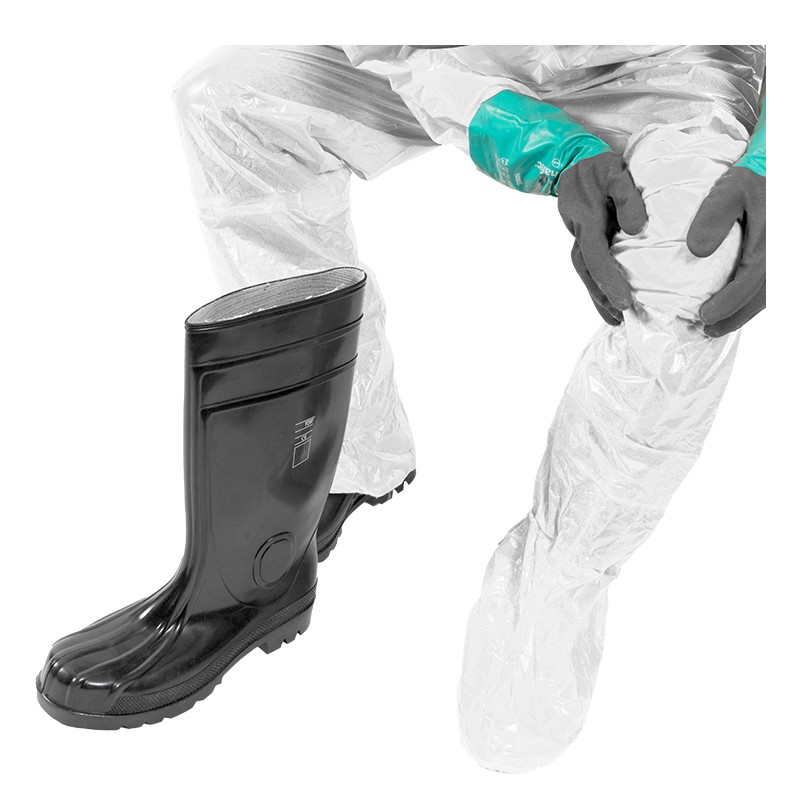 Fest angearbeitete ANSELL Barrier Laminathandschuh mit Schutzstulpe runden den Anzug ab und bieten eine anatomische Passform, sowie Schutz vor einem äußerst breiten Spektrum von Chemikalien und Flüssigkeiten.