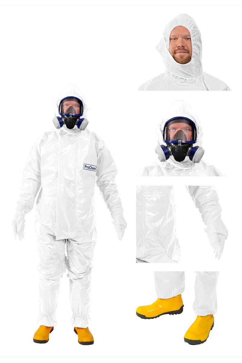 Der ProChem® I wird vornehmlich in der Industrie- und Tankreinigung, bei Inspektionsarbeiten und bei Einsätzen von Feuerwehren und Rettungskräften verwendet. Gummizüge an Ärmeln, Beinen und Kapuze sowie ein Taillengummi sorgen für eine optimale Passform und der großzügig geschnittene Schrittbereich für optimale Bewegungsfreiheit. Die ergonomische Kapuze und die erhöhte doppelte Abdeckblende mit Klettverschluss über dem Reißverschluss bis zum Kinn bieten zusätzlichen Schutz. Elastische Daumenschlaufen verhindern das Hochrutschen der Ärmel bei Überkopfarbeiten.