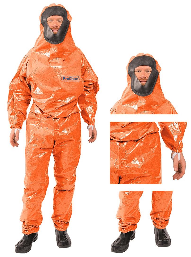 Der ProChem® II wird vornehmlich bei Tank- und Kanalreinigungen, im Umgang mit festen und flüssigen Gefahrstoffen oder bei Dekontaminierungsarbeiten und Gefahrguteinsätzen verwendet. Gummizüge an Ärmeln und Beinen sowie ein Taillengummi sorgen für eine optimale Passform und der großzügig geschnittene Schrittbereich für optimale Bewegungsfreiheit. Der waagerechte Einstieg im Rücken mit geschützter Wickelblende und Klettverschluss bietet einen dichten Verschluss. Eine Gesichtsmanschette aus Butyl dichtet die Außenseite von Vollschutzmasken optimal ab.