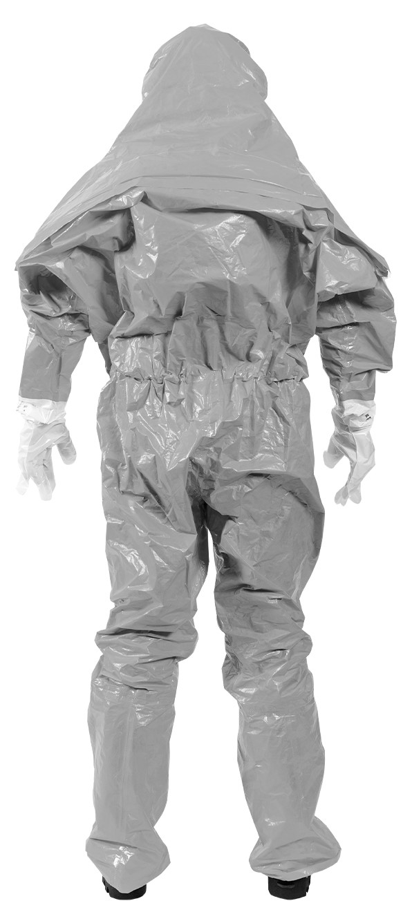 Hergestellt wird der Anzug aus Tychem F, selbiges ist ein leichtes, widerstandsfähiges Material und bietet eine hohe Barriere gegen die Permeation einer Vielzahl von Chemikalien und schützt den Träger vor zahlreichen organischen und hochkonzentrierten anorganischen Chemikalien. Antistatisch ausgerüstet ist es ebenfalls.
