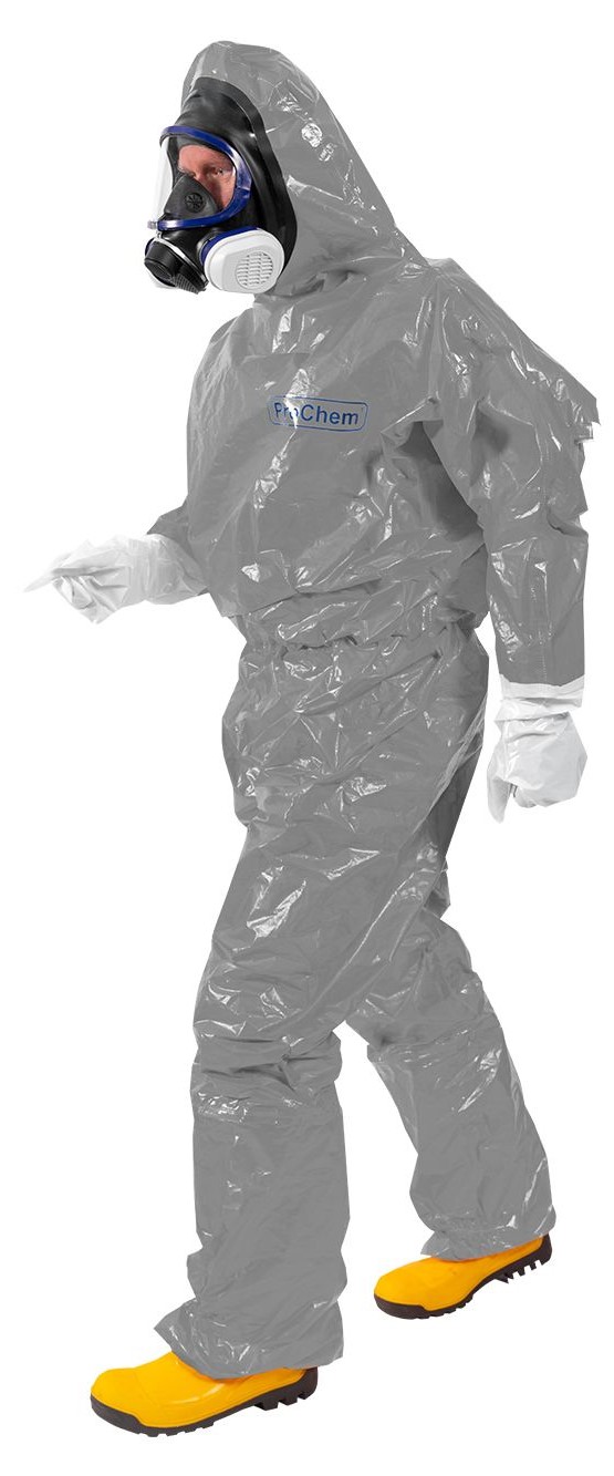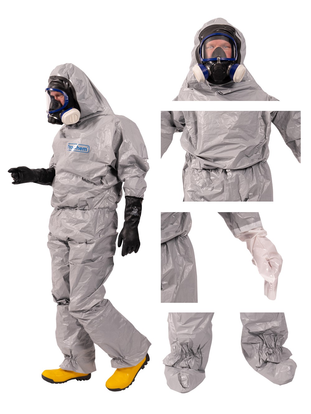 Der ProChem® II wird vornehmlich bei Tank- und Kanalreinigungen, im Umgang mit festen und flüssigen Gefahrstoffen oder bei Dekontaminierungsarbeiten und Gefahrguteinsätzen verwendet. Gummizüge an Ärmeln und Beinen sowie ein Taillengummi sorgen für eine optimale Passform und der großzügig geschnittene Schrittbereich für optimale Bewegungsfreiheit. Der waagerechte Einstieg im Rücken mit geschützter Wickelblende und Klettverschluss bietet einen dichten Verschluss. Eine Gesichtsmanschette aus Butyl dichtet die Außenseite von Vollschutzmasken optimal ab.