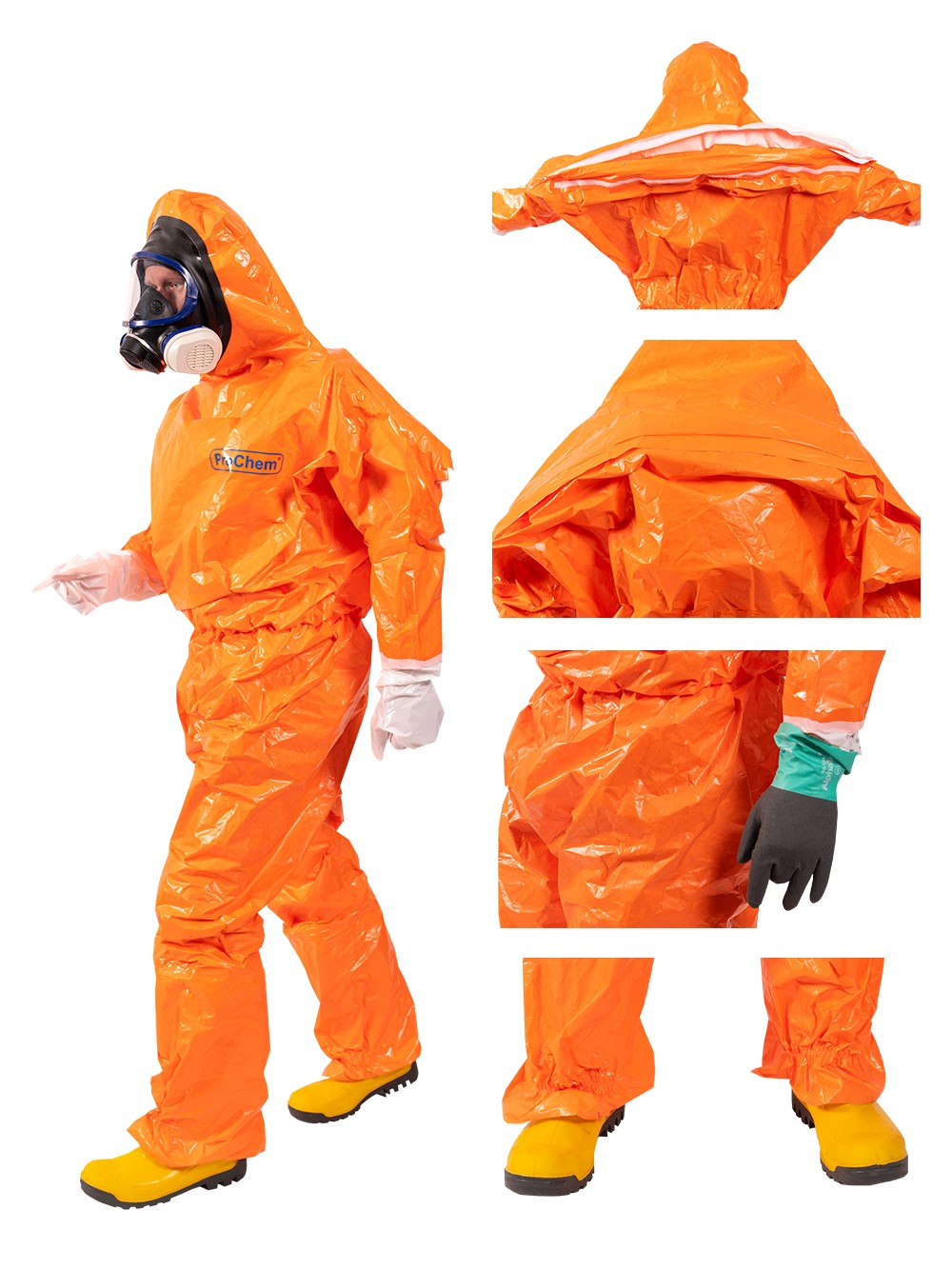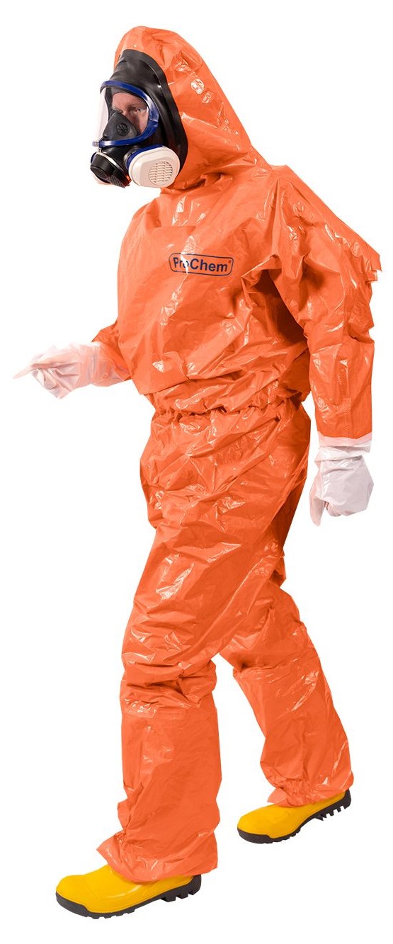 Der ProChem® II wird vornehmlich bei Tank- und Kanalreinigungen, im Umgang mit festen und flüssigen Gefahrstoffen oder bei Dekontaminierungsarbeiten und Gefahrguteinsätzen verwendet. Gummizüge an Ärmeln und Beinen sowie ein Taillengummi sorgen für eine optimale Passform und der großzügig geschnittene Schrittbereich für optimale Bewegungsfreiheit. Der waagerechte Einstieg im Rücken mit geschützter Wickelblende und Klettverschluss bietet einen dichten Verschluss. Eine Gesichtsmanschette aus Butyl dichtet die Außenseite von Vollschutzmasken optimal ab.