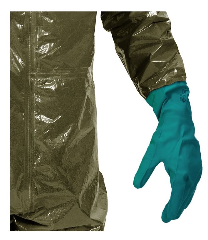 Fest angearbeitete silikonfreie KCL Camatril 730 Handschuhe aus Nitril runden den Anzug ab. Der Handschuhe bietet ihnen eine gute Abrieb-, Stich- und Schnittfestigkeit, ist beständig gegen Säuren, Laugen, langkettige Alkohole und aliphatische und alicyclische Kohlenwasserstoffe.