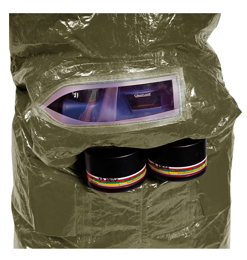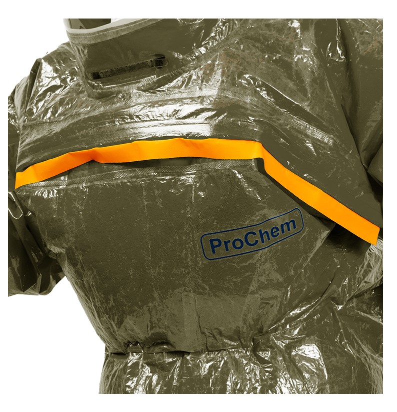Der Vollschutzoverall ProChem® III wird mit Gebläseatemschutz (PAPR Unit) betrieben, der kontaminationsfrei unter dem Overall getragen wird. Die doppelte Abdeckblende des Fronteinstiegs wird per Wickelblende verschlossen. Gummizüge an Ärmeln und Beinen sowie ein Taillengummi sorgen für eine optimale Passform und der großzügig geschnittene Schrittbereich für optimale Bewegungsfreiheit. Das Panoramavisier ermöglicht eine perfekte Rundumsicht und bietet genügend Platz für Helme oder Kommunikationssysteme. Das Gebläse ermöglicht lange Einsätze und gute Luftverteilung durch Ausatemventile.