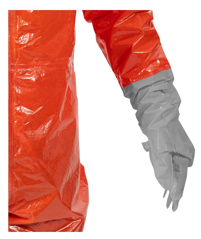 Fest angearbeitete RESPIREX Kemblok Laminathandschuh, welche gut als Innenhandschuh unter robusten Handschuhen getragen werden können und silikon- und latexfrei sind, runden den Anzug ab. Das siebenschichtige Material bietet hervorragenden Schutz vor einem breiten Spektrum an Chemikalien.