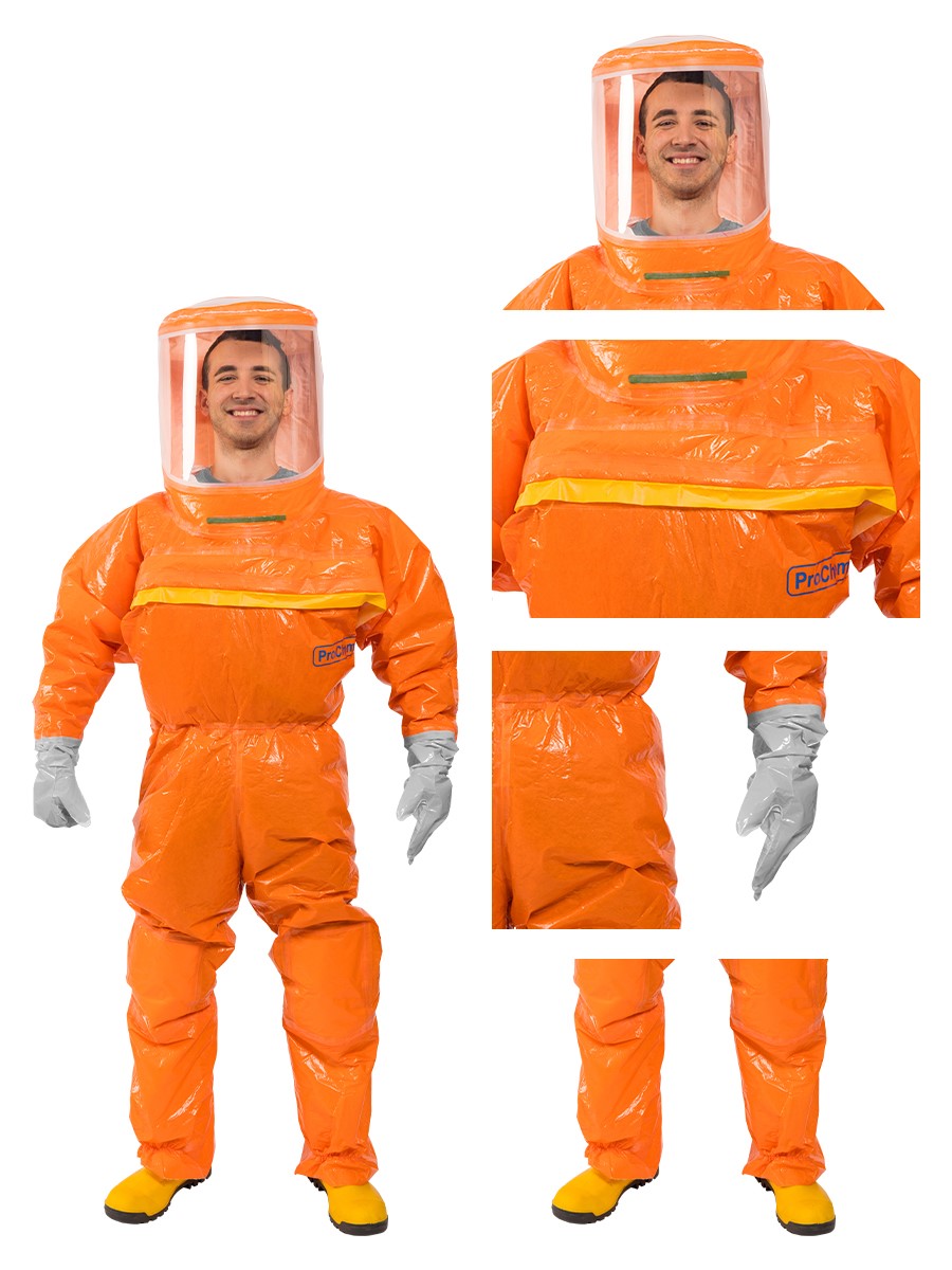 Der Vollschutzoverall ProChem® III wird mit Gebläseatemschutz (PAPR Unit) betrieben, der kontaminationsfrei unter dem Overall getragen wird. Die doppelte Abdeckblende des Fronteinstiegs wird per Wickelblende verschlossen. Gummizüge an Ärmeln und Beinen sowie ein Taillengummi sorgen für eine optimale Passform und der großzügig geschnittene Schrittbereich für optimale Bewegungsfreiheit. Das Panoramavisier ermöglicht eine perfekte Rundumsicht und bietet genügend Platz für Helme oder Kommunikationssysteme. Das Gebläse ermöglicht lange Einsätze und gute Luftverteilung durch Ausatemventile.