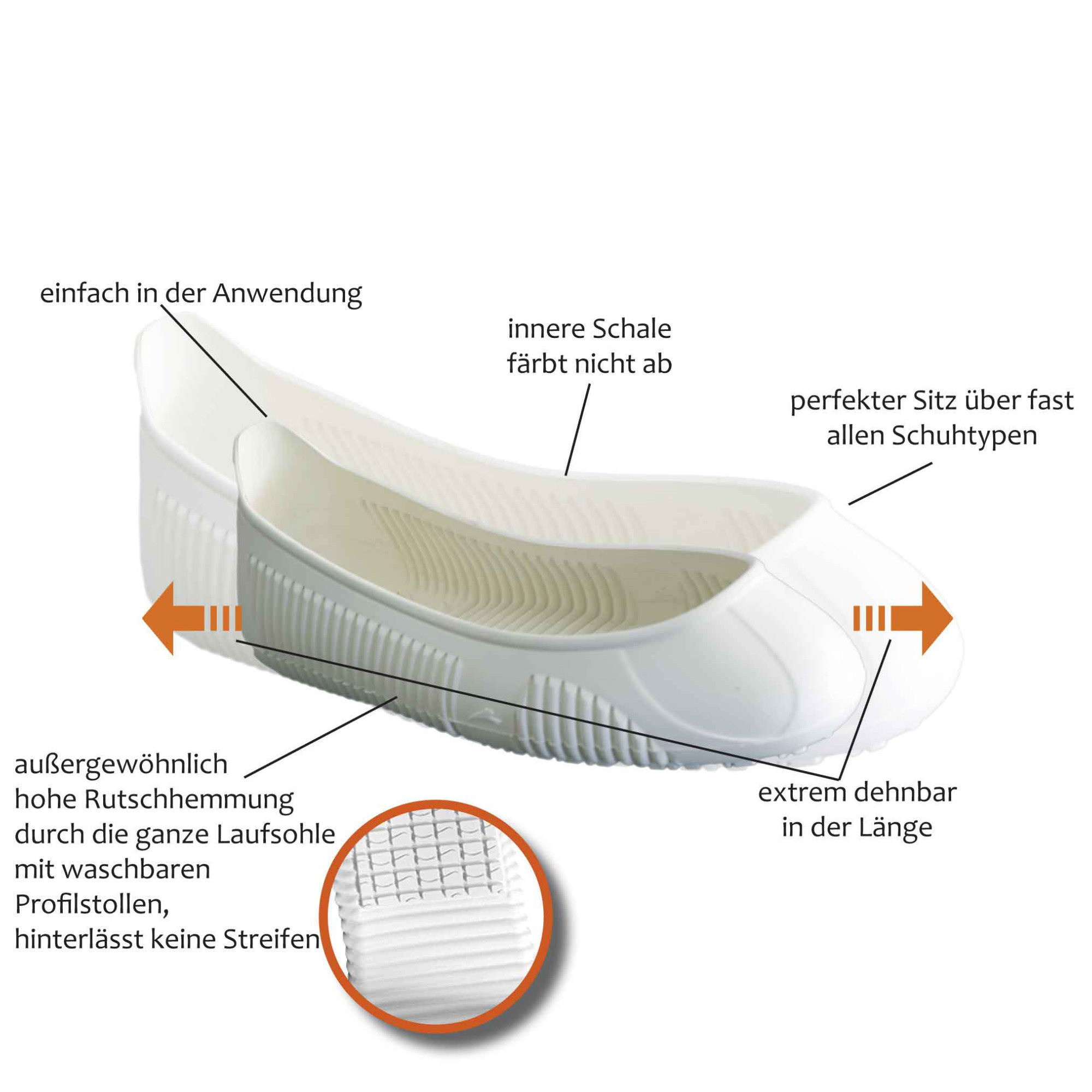 - über fast jedem Schuhtyp, hygienisch und bequem
