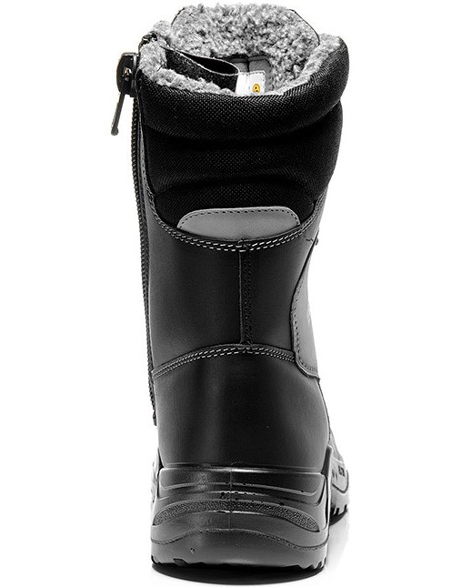 Der ESD/fähige Winter-Sicherheitsstiefel JONTE High ESD S3 Cl aus der SAFEGUARD Serie empehlt sich als molliger Fußschutz: Auf den Einsatz in der kalten Jahreszeit ist er durch sein Warmfutter und eine ganzächige Warmvlies Einlegesohle bestens vorbereitet. Reexmaterial sorgt für Wahrnehmbarkeit bei schlechten Lichtverhältnissen, und die grobstollige Sohle bietet guten Halt auf unsicheren Untergründen. Dieser Sicherheitsstiefel eignet sich wegen seiner großzügigen Passform besonders für Beschäftigte mit voluminösen Füßen, die bei ungewöhnlicher Breite einen hohen Rist besitzen. Die Kunststoffkappe lässt den Zehen Bewegungsfreiheit, und der metallfreie Durchtrittschutz verhindert Verletzungen durch gefährliche Gegenstände am Boden. Das Obermaterial aus Rindleder, hydrophobiertem Nubukleder und hydrophobiertem Textilmaterial CORDURA® übersteht auch harte Herausforderungen hervorragend; der PU-Spitzenschutz sorgt für Extra-Langlebigkeit des Schuhs. Durch die Kombination aus Schnürung und Reißverschluss lässt sich JONTE dem Bein optimal anpassen. Weiteres Plus: Die Zertizierung nach DGUV Regel 112-191 ermöglicht individuelle orthopädische Anpassungen. JONTE ist in den Größen 37 bis 47 erhältlich.