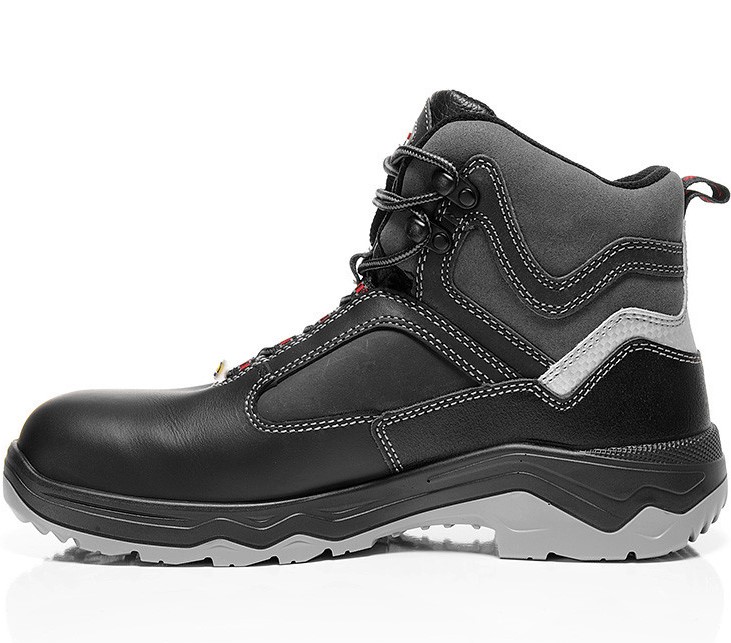 Der ESD-fähige Sicherheitsstiefel LEX ESD S2 aus der Serie ELTEN NEW CLASSICS zeichnet sich durch funktionsorientiertes, sportliches Design aus und ist bekannt zuverlässig. Er ist in den Größen 38 bis 48 erhältlich – ein Stiefel zum Wohlfühlen, denn atmungsaktives Textilfutter fördert ein angenehmes Fußklima. Die wasserabweisenden Obermaterialien Rindleder, hydrophobiertes Nubukleder und leichte, aber reißfeste Mikrofaser sind sehr strapazierfähig. Unter den Stahlkappen sind die Zehen gut geschützt; die Laufsohle der NEW CLASSICS Serie gibt dem Träger durch sehr gute rutschhemmende Eigenschaften Grip auf vielerlei Untergründen. Der Schaft ist mit Reexmaterial ausgestattet, das bringt noch mehr Sicherheit besonders bei schlechtem Licht. Auch für Beschäftigte, die auf orthopädisch angepasste Schuhe angewiesen sind, ist dieser Fußschutz geeignet: Er ist nach DGUV Regel 112-191 zertiziert, darf also mit orthopädischen Einlagen versorgt werden, ohne dadurch seine Zulassung als Sicherheitsschuh zu verlieren.