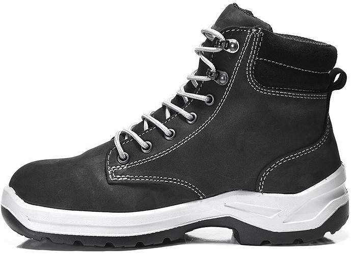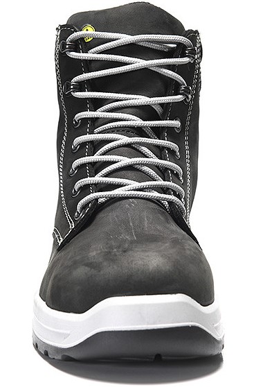 Einen Sicherheitsschnürstiefel, der perfekt an die Bedürfnisse weiblicher Trägerinnen angepasst ist, bekommt man mit dem LILLY black Mid ESD S3. Optisch überzeugt das Modell mit einem Obermaterial aus schwarzem hydrophobierten Nubukleder und Mikrofaser. Akzente werden durch die grauen Nähte und Schnürsenkel gesetzt, die mit der grauen SRC zertifizierten PU/PU Laufsohle harmonieren. Die Laufsohle der Reihe TREKKING LADY unterstützt das natürliche Abrollen des Fußes durch eine S-linienförmige Profilanordnung. Für die nötige Sicherheit sorgen die eingesetzte Stahlkappe sowie eine metallfreie Durchtritthemmung, die den Fuß der Trägerin vor herabfallenden Gegenständen oder auf dem Boden liegenden Gefahren schützen. Mit einem atmungsaktiven Innenfutter aus Textil und der speziellen Passform für den weiblichen Fuß können Trägerinnen einen besonders angenehmen Tragekomfort erwarten. Der Größengang dieses Damenmodells geht von Größe 34 bis 42.