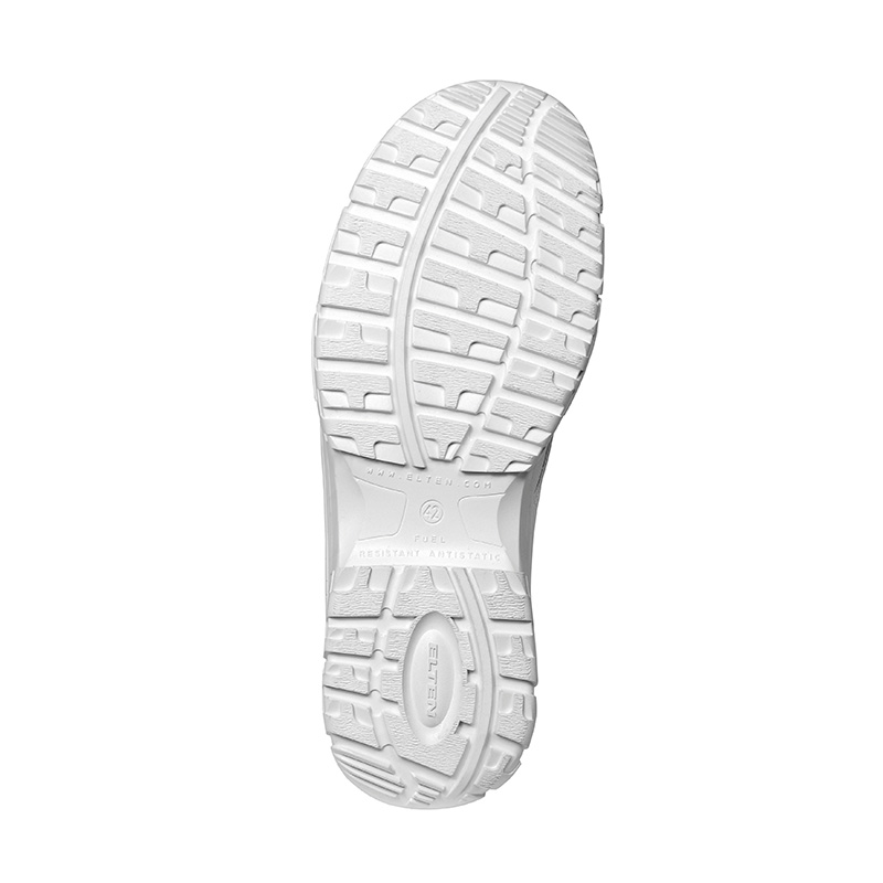 Ideal für alle Weiß- und Hygienebereiche: der Sicherheitsstiefel WHITE STRAP Mid ESD S3 aus der ELTEN WHITE Serie ‒ mit Klettverschlüssen für den bequemen Ein- und Ausstieg. Die hydrophobierte Mikrofaser des Obermaterials ist besonders leicht, einfach zu reinigen und formbeständig. Ergonomisch geformte Stahlkappen schützen die Zehen vor Druck und Stoßeinwirkungen, und der exible metallfreie Durchtrittschutz wehrt Gefahren für den Fuß ab, die auf dem Boden durch scharfe oder spitze Gegenstände drohen. Gleichzeitig wirkt die Safety-Grip Laufsohle rutschhemmend. Für gute Wahrnehmbarkeit sorgt zudem das Reexmaterial am Schaft. Diese Serie zeichnet ein hoher Tragekomfort aus; auch der WHITE STRAP Mid besitzt nicht nur eine ausgesprochen bequeme Passform, sondern ist zusätzlich nach DGUV-Regel 112-191 für individuelle orthopädische Anpassungen zertiziert. Er ist lieferbar in den Größen 39 bis 48.