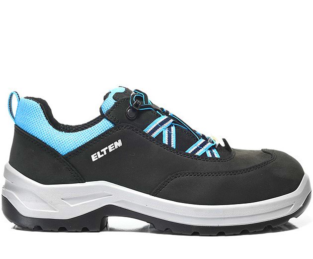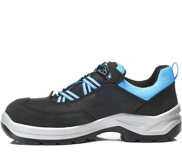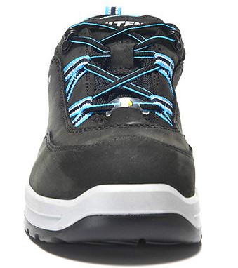 Mattschwarzes Damen-Modell - Die dezente LOTTE aqua Low ESD S2 mit azurblauen Details ist ein für Damen entwickeltes Modell mit SRC zertifizierter PU/PU Laufsohle der Serie TREKKING LADY. Das hydrophobierte Obermaterial aus Nubukleder und dem Textilmaterial CORDURA® ist nicht nur schick anzusehen, sondern macht den Sicherheitshalbschuh auch draußen und bei Nässe gut einsetzbar. Der ESD-fähige Schuh ist mit einer Stahlkappe ausgestattet, die den Vorfußbereich der Trägerin zuverlässig vor herabfallenden Gefahren schützt. Mit dem atmungsaktiven Textilfutter und dem speziellen Ladies Fit bleiben beim Tragekomfort für die Damenwelt keine Wünsche offen! Der LOTTE aqua Low ESD S2 ist in den Größen 34 bis 42 erhältlich.