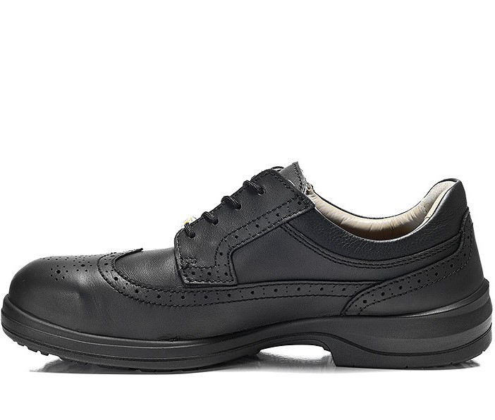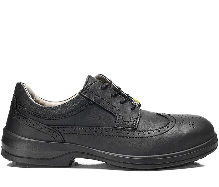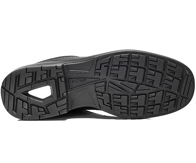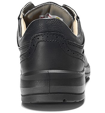 Als eleganter schwarzer Business-Sicherheitsschuh mit Lederausstattung ist der OFFICER XXB ESD S2 der ideale Allrounder für verschiedenste Anforderungen. Besonders edel: das kontrastierende helle Lederfutter. Die SRC zertifizierte Mono-PU Laufsohle ist vielfältig einsetzbar und sorgt mit den abgeschrägten T-Profilrippen für einen standfesten Auftritt. Ein Extra an Bequemlichkeit entsteht durch den Sohlenkern aus dem Material Infinergy® von BASF − kleinen Schaumstoffperlen, die optimal rückfedern. Hierdurch wird dem Träger mit jedem Schritt Energie zurückgegeben und die müden Gelenke können sich auf Entlastung freuen. Der ESD-fähige Sicherheitsschuh verfügt zudem über eine Zehenschutzkappe aus Stahl und ist erhältlich in den Größen 39 bis 49.