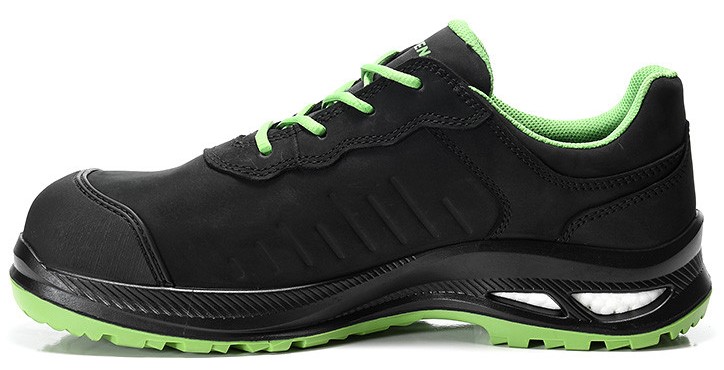 Unseren STEWART, den Beschützer der Füße, gibt’s auch als Low-Top Variante. Sonst ändert sich nicht viel, auch der STEWART XXG Pro GTX black-green Low ESD S3 HI CI ist ein absolut anpassungsfähiges Modell mit GTX-Technologie. GORE-TEX, bekannt für seine Outdoor-Fähigkeiten, überzeugt Schuhträger bei nasskaltem und windigem Wetter. Denn die im Inneren verarbeitete GORE TEX Performance Comfort Footwear hält den Schuh wasserdicht und sorgt zugleich für gute Luftzirkulation, so dass hier nichts schwitzt oder unangenehm riecht. Das Obermaterial aus hydrophobiertem Nubukleder ist so atmungsaktiv wie herkömmliches Leder, zeigt aber einige verbesserte Eigenschaften. Denn durch die Hydrophobierung trocknet es schneller und sorgt so für eine bessere Wärmeregulation. Auch optisch besticht das hydrophobierte Nubukleder, denn weil Flüssigkeiten an der Oberfläche abperlen, bilden sich so gut wie keine Wasserränder oder Flecken. Eine Zehenschutzkappe aus Kunststoff wehrt herunterfallende Objekte ab, was durch den Spitzenschutz aus TPU sogar verstärkt wird und der metallfreie Durchtrittschutz schützt gegen das Eindringen von spitzen Gegenständen. Die GUMMI/PU Sohle sorgt für hervorragende Rutschhemmung, bestellbar ist der ESD-fähige Sicherheitsschuh in 39 bis 48.