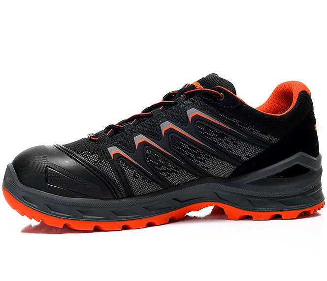 Mit dem LARROX Work GTX black Lo S3 CI sichert mach sich einen Sportler Das schwarze Obermaterial aus hydrophobiertem Textilmaterial wird ergänzt durch die GUMMI/PU Sohle in schicken Orange. Der sportliche Sicherheitshalbschuh aus unserer LOWA Work Collection kommt mit einer Stahlkappe und metallfreiem Durchtrittschutz. Vor eindringendem Wasser schützt zudem die GORE-TEX Membran. Die Füße bleiben trocken und das Schuhklima ist dauerhaft angenehm reguliert. Tiefste Temperaturen im Anmarsch? Kein Problem, denn der LARROX ist kälteisolierend, wodurch die Füße auch bei eisiger Kälte nicht zu stark auskühlen. Auch Arbeiten in kniender Position sind kein Problem. Eine TPU Überkappe schützt vor vorzeitigem Verschleiß der Schuhspitze und trägt zur Langlebigkeit des S3-Halbschuhs bei. Der LARROX ist in den Größen 39-48 erhältlich.