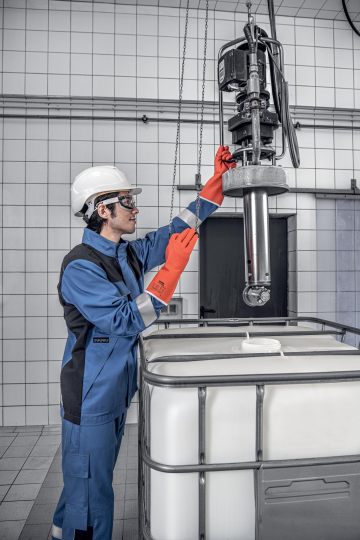 - Chemikalienschutzhandschuh mit Stulpe für Umgang mit vielen verschiedenen Chemikalien