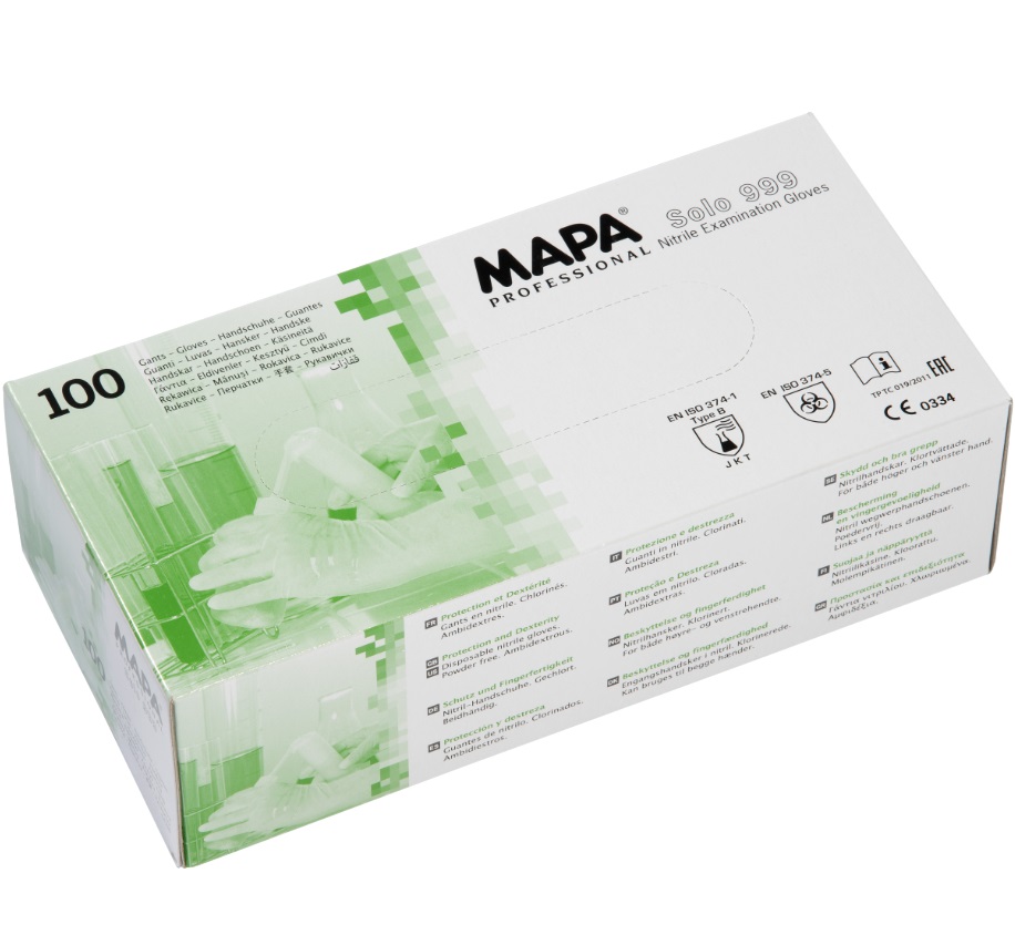 Produktinformationen "Mapa Solo 999 Nitril-Einweg-Chemikalienschutzhandschuhe"