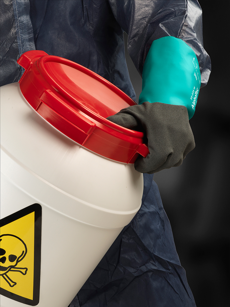Die integrierte Ansell Grip Technology™ ermöglicht dem Nutzer eine kontrolliertere Handhabung von nassen oder öligen Objekten mit weniger Kraftaufwand beim Greifen. Diese einzigartige Kombination von Chemikalienschutz, Griffsicherheit, Flexibilität und Beweglichkeit macht den AlphaTec® zur logischen Wahl für die Arbeit mit Chemikalien. Zuverlässiger Chemikalienschutz für erhöhte Anwendersicherheit. Die patentierte Ansell Grip Technology™ verhindert während der Herstellung die Durchdringung des Trägers durch die Polymerbeschichtung. Diese homogene Schutzschicht reduziert das Risiko, dass Chemikalien durch das Handschuhmaterial zur Haut durchdringen erheblich. AlphaTec®-Modelle mit einem weißen Nylonträger werden für Innen-, die Ausführungen mit einem schwarzen Acrylträger für Außenarbeiten empfohlen.