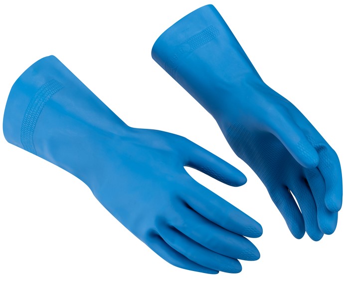 Chemiehandschuhe zum Schutz vor schädlichen Lösungsmitteln und Reinigungsmitteln. Hergestellt aus hochwertigem Latex für ausgezeichnete Elastizität. Eine Flockauskleidung gewährleistet maximalen Komfort. Wabenstruktur für besseren Halt sowohl in nassen als auch in trockenen Bedingungen.