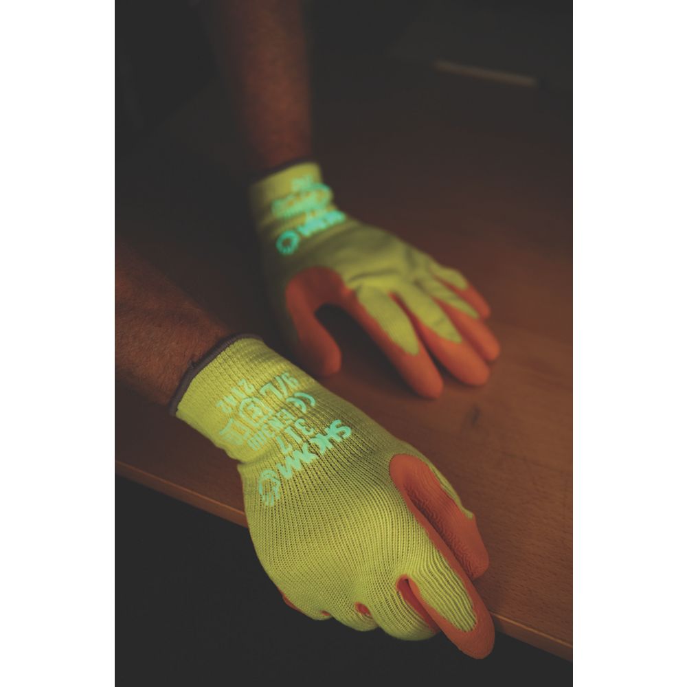 Diese strapazierfähigen Handschuhe wurden für den Schutz bei schlechten Lichtverhältnissen entwickelt und sind ideal für den Einsatz im Innen- und Außenbereich. Die getauchte Gummibeschichtung auf der Handfläche schützt die Hände und die strukturierte Oberfläche bietet zusätzliche Griffsicherheit. Ein elastisches Bündchen verhindert das Eindringen von Schmutz und Rückständen in den Handschuh, damit die Hände bequem und frei von Hautreizungen bleiben.