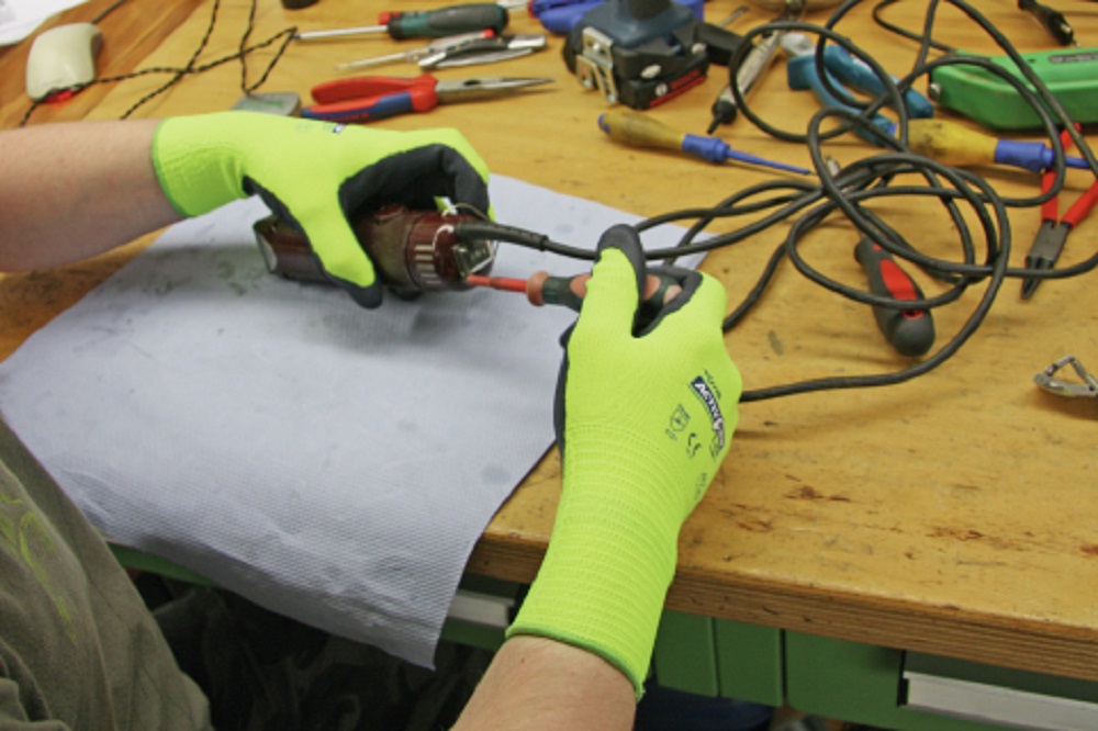 - Fingerspitzen und Handinnenfläche mit abriebfester Latexbeschichtung