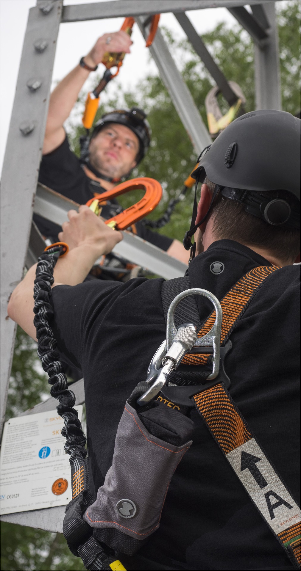 50 - 140 kg INNERHALB der Norm! ONE4ALL - Der SKYSAFE PRO - Revolutionäres, patentiertes Dämpfersystem, das bei der großen Gewichtspanne von 50kg - 140kg immer einen max. Fangstoß von unter 6kN und einen Auffangweg von max. 1,75m realisiert. Damit erfüllt SKYLOTEC als einziger Hersteller die komplette EN 355 mit einem erhöhten Prüfgewicht von 140 kg. Außergewöhnlich sind ebenfalls die 22kN Endfestigkeit, auch im Dämpfer, vor UND nach dem dynamischen Fall. Der SKYSAFE PRO erfüllt zudem die relevantesten internationalen Normen in nur EINEM Produkt. EINZIGARTIG: Durch die eingenähten RESCUE LOOPS, die im Sturzfall sichtbar werden, kann das Rettungsgerät ohne zusätzliche Seilklemme direkt am Falldämpfer festgemacht werden. Erhältlich in vier verschiedenen Varianten mit unterschiedlichen Karabinerkombinationen: I-Strang, Y-Strang, I- Strang Tie-back, Y-Strang Tie-back.