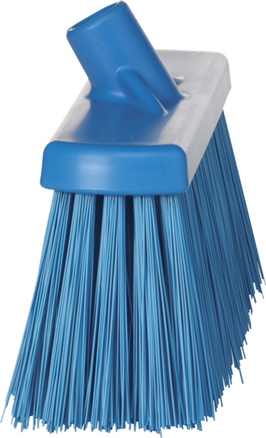 Besen mit langen, dicken Filamenten. Eignet sich z.B. für die Entfernung von großen Abfallprodukten vom Fußboden, vor der Reinigung oder während der Produktion in der Fleisch- und Fischindustrie. Macht die Reinigung effizienter. Einfach zu reinigen.