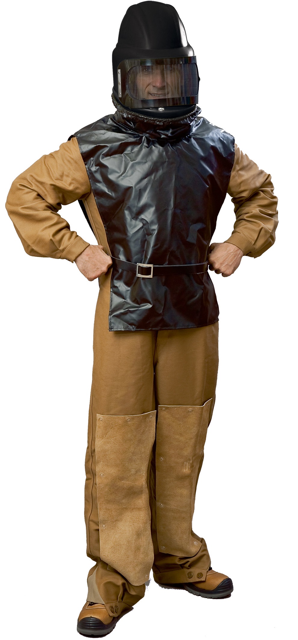 Die Dreifach-Schutzwirkung - Atemschutz, Kopfschutz und Rumpfschutz - sorgt für Sicherheit beim Strahlen.