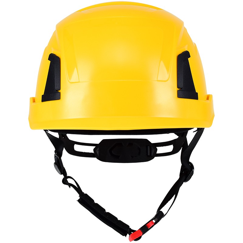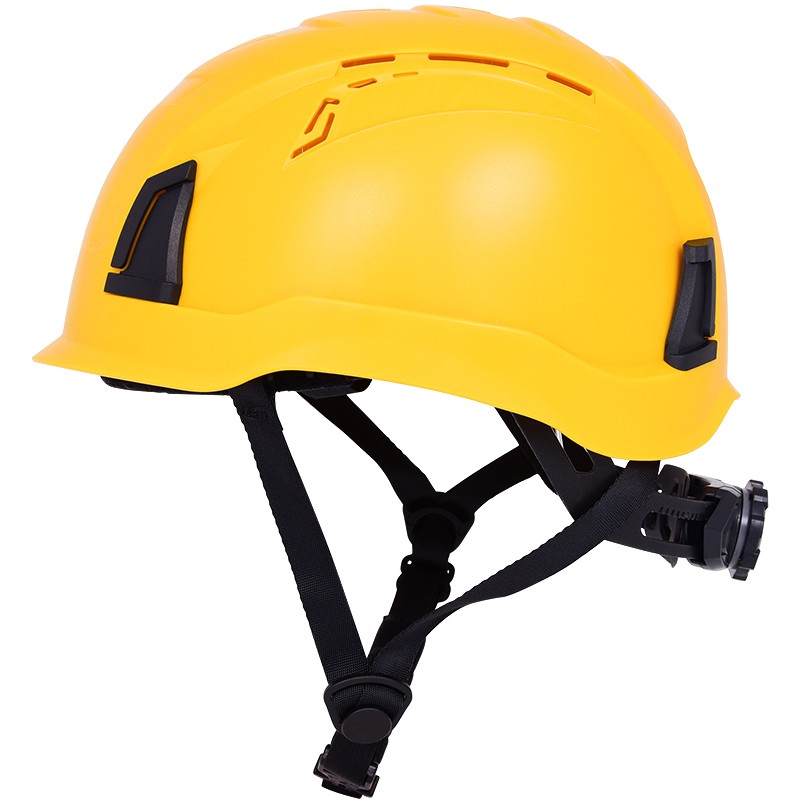 Eigenschaften Pro Cap D!-Rock Schutzhelm, moderner, leichter Arbeitsschutzhelm, als Höhenarbeitshelm durch das kurze Dach und der Bergsteigerhelm nachempfundenen Form, bestens geeignet, hoher Tragekomfort mittels 6-Punkt-Textil-Bänderung - hoch reißfest, austauschbares Stirnband, einfaches Anpassen des Kopfbandes, durch ein modernes Ratschensystem, perfektes Klima, dank neuartigem Belüftungssystem - obenliegende Ventilationsöffnungen (Kamineffekt), inklusive montiertem Kinnriemen, Nackenschutz, Befestigung einer Stirnlampe möglich, 30 mm Stecktaschen zur Aufnahme aller gängigen Helm-Bügelgehörschützer und Visierhaltungen