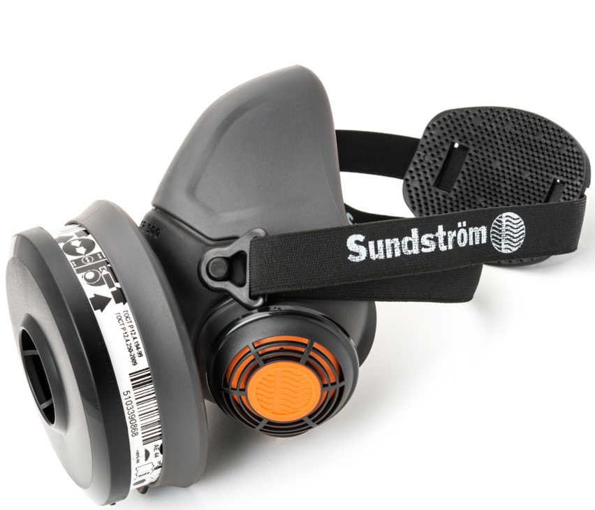 Die Halbmaske SR 900 wird aus TPE (thermoplastische Elastomere) und polypropylen (PP) hergestellt und ist in drei Größen S, M und L erhältlich. Die Maske ist mit zwei Ausatemventilen ausgestattet, die sich durch äußerst geringen Atemwiderstand auszeichnen. Die Ventilkappen mit Abschirmer schützen die Ausatemmembrane gegen Staub und Farbpartikel. Material und Farbpigmente des Maskenkörpers sind für Lebensmittel zugelassen (FDA), so dass die Gefahr von Kontaktallergien auf ein Minimum beschränkt wird. Die einfach verstellbaren Tragebänder stellen eine V-Schleife dar und besitzen eine große schalenförmige Kopfplatte, die eine bequeme und sichere Einstellung ermöglicht. Die Halbmaske SR 900 wird verwendet mit: Filtern aus dem Sundström-Sortiment. Dem Rückenhalter Filtersystem SR 905, gemäß EN 12083. Dem SR 307 oder SR 507 Druckluftzusatz, der als Atemgerät mit Dauerzufluss an einer Druckluftversorgung dient, gemäß EN 14594:2005. Die Gebläseeinheit SR 500/SR 700 mit zugelassenen Filtern gehört zum Sundström-Atemschutz-System mit Gebläse, das der EN 12942:1998 entspricht. Halter für Vorfilter sind in der Lieferung enthalten. Aufbewahrung am besten in Box SR 230 bzw. Aufbewahrungstasche SR 339.