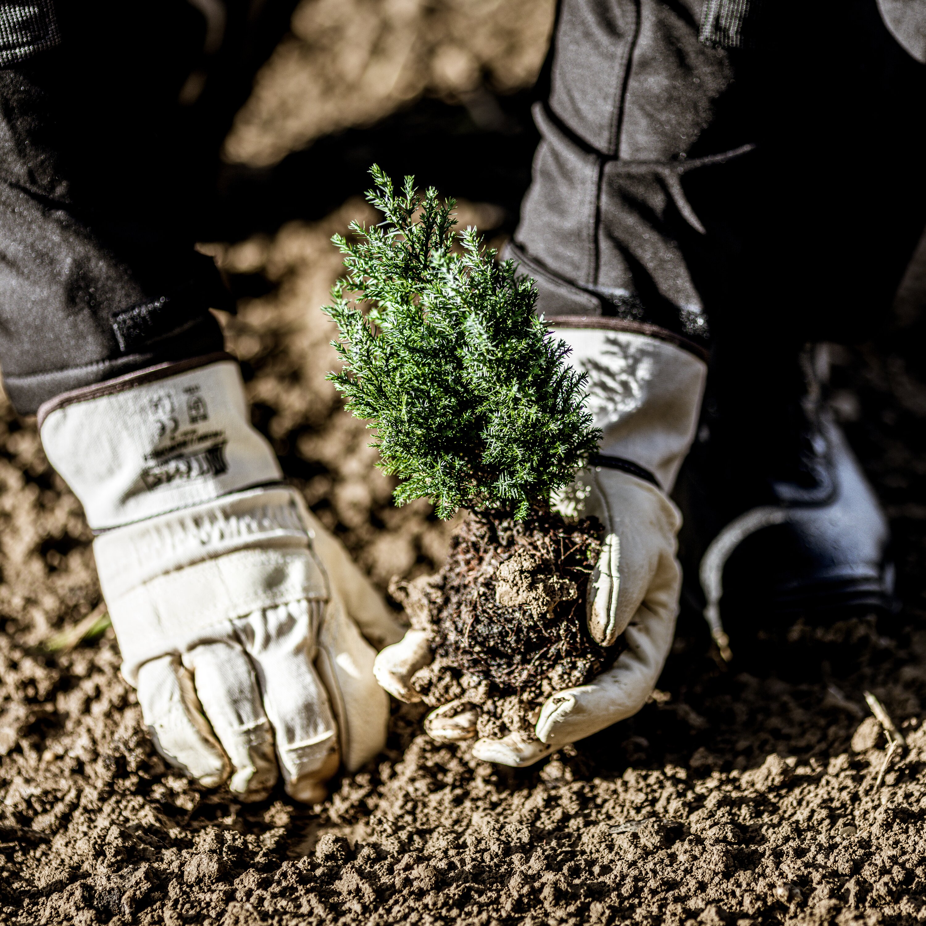NITRAS BIOWORKER, Rindvolllederhandschuhe, Baumwoll-Rücken, naturfarben, Rindvollleder, braun, Innenhandfutter, Segeltuchstulpe, Doppelnähte, vegetabil gegerbtes Leder