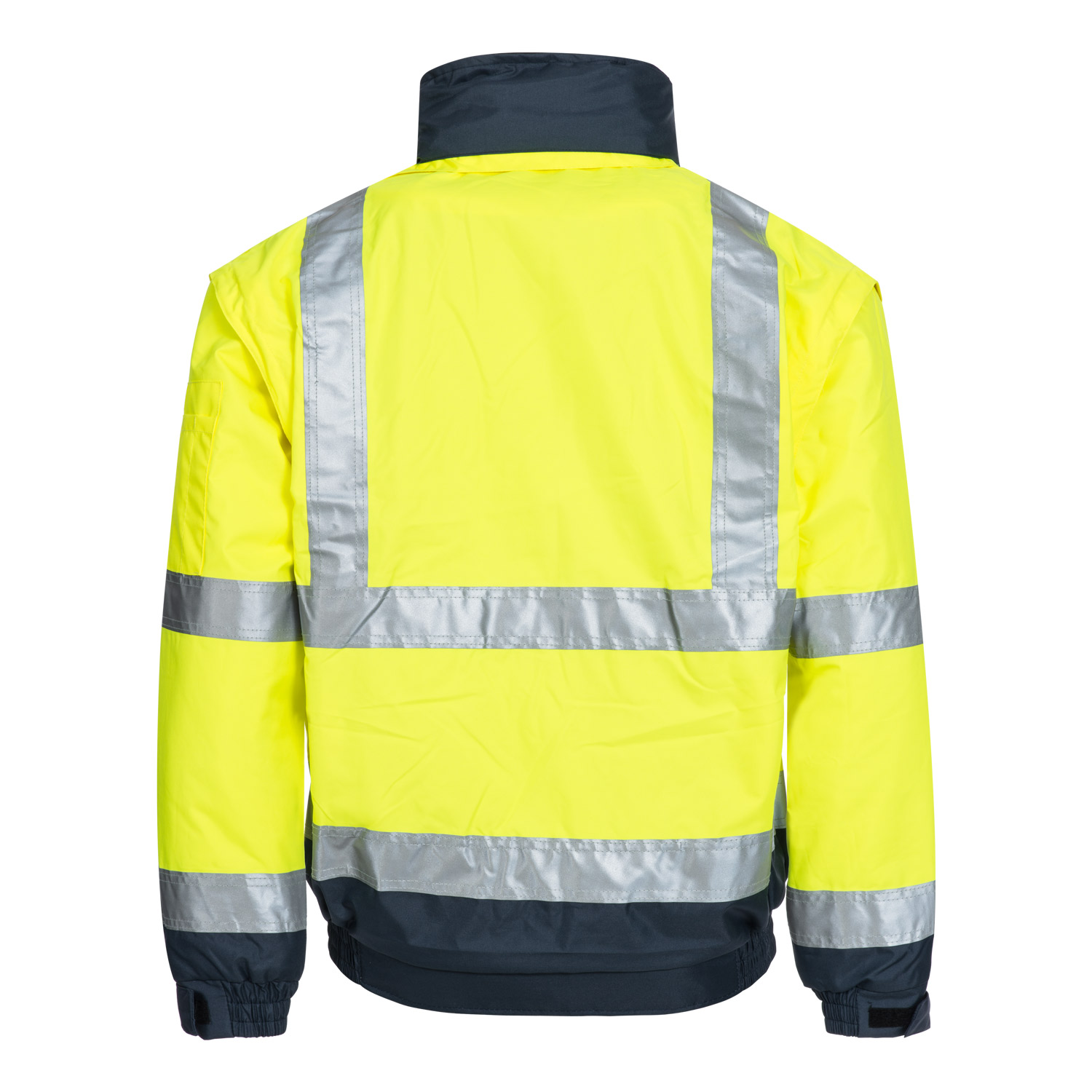 NITRAS MOTION TEX VIZ PLUS, Warnschutz-Pilotenjacke, neongelb / blau, abnehmbare Ärmel, hochwertiges, herausnehmbares Polar-Fleece, abnehmbare, ungefütterte Kapuze, je zwei Brust- und Seitentaschen, Smartphone-Tasche, Ärmeltasche, Napoleontasche, Innentaschen, umlaufende 3M Scotchlite™-Reflexstreifen, 2-Wege-Reißverschluss, abnehmbare Winterkapuze optional erhältlich, Brusttasche mit innenliegender Schlaufe für Ausweishüllen